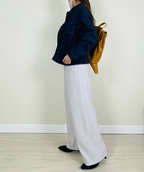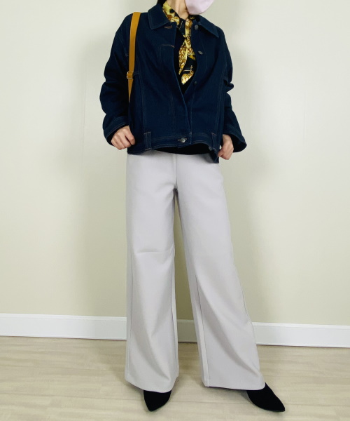 低身長という事もあってか、裾が長めなので、パンプス合わせで足首付近がこなれて見えます。