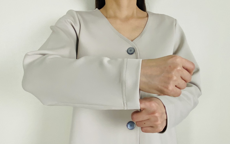 袖の長さは長すぎず、ちょうどよく収まる感覚です。