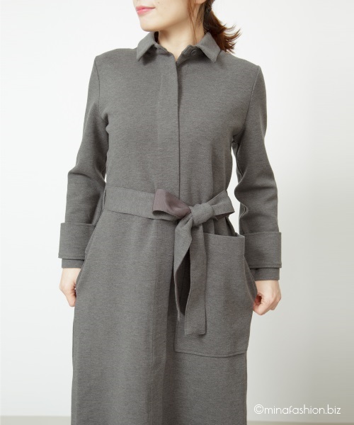 ウール混ポンチ・シャツワンピース(¥13,090)