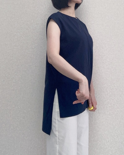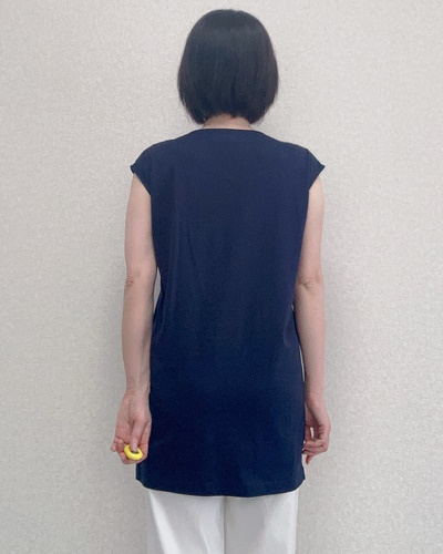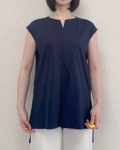 身頃の中心には縫い合わせのラインが入っており、キーネックとの相乗効果でスッキリ感が倍増。