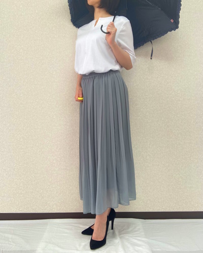 今回使ったミントグリーンのスカートのように、ニュアンスのあるカラーにもマッチします。