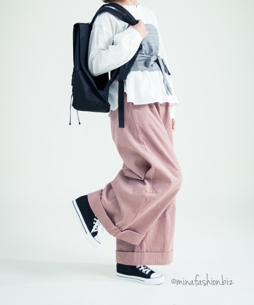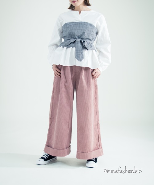 シンプルな定番アイテムもたくさんありますが、ビスチェがドッキングした個性的なトップスに、トレンドのコーデュロイワイドパンツを購入しました。