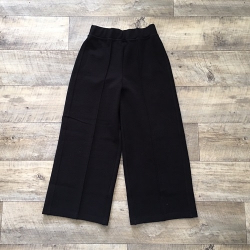 ブラックのワイドパンツも、オフィスカジュアルにも使えて便利です。