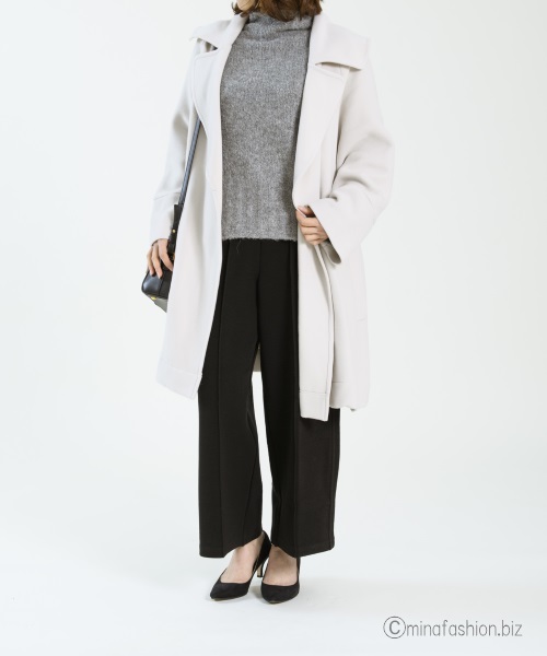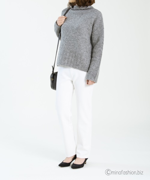 とろみスリットタートルニット×ホワイトパンツで清潔感ある大人コーデに