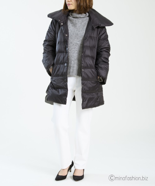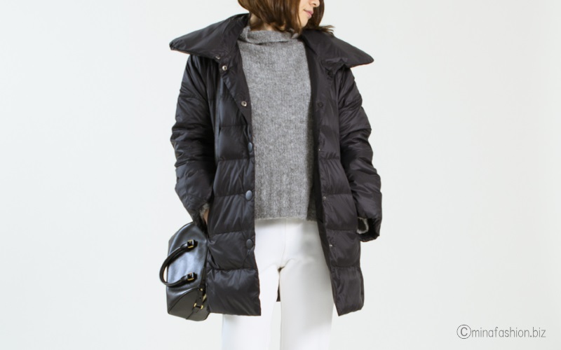 ミドル丈のダウンコートは、ヒップ回りをカバーしてくれますし、妙なエレガントさを出しすぎないからおすすめです。