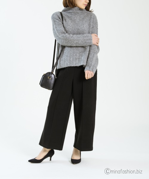 とろみスリットタートルニット×ブラックワイドパンツできれいめに。