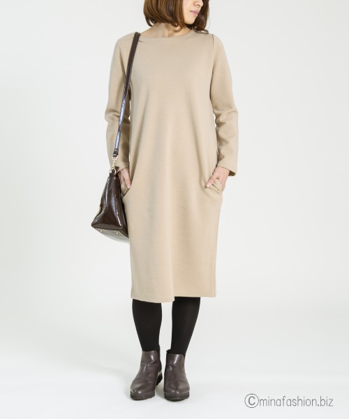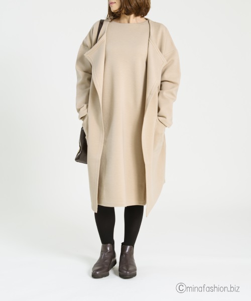 シンプルなワンピース×コーディガンのアンサンブル、アウターを色々チェンジ