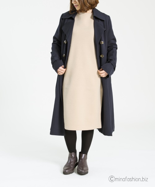 ベージュのトレンチが一般的ですが、ワンピースがベージュなのでネイビーをチョイス。
