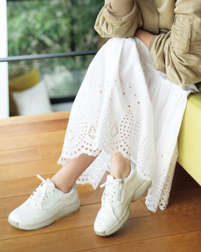 スマートなフォルムはパンツだけでなくスカートにもなじみ、毎日のコーディネートに大活躍です。
