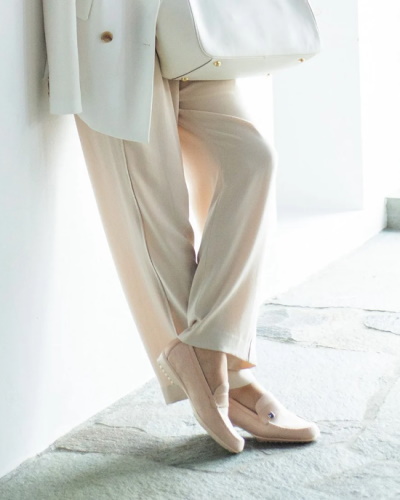 ポインテッドトゥが特徴のフラットモカシンは、オフィスカジュアルに合わせやすい上品なデザイン。
