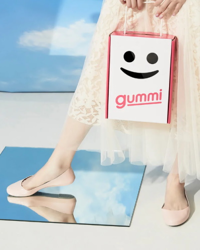 「魔法のハッピーシューズ」という別名を持つグミフラットは、グミを思わせる吸いつくような履き心地が魅力のレインシューズ。