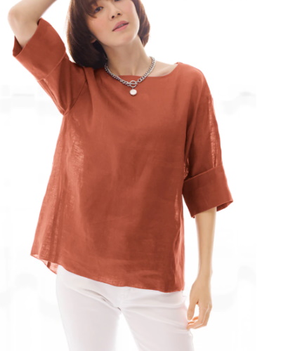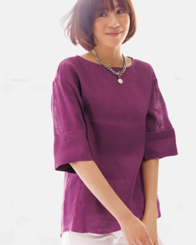 五分袖リネンブラウス