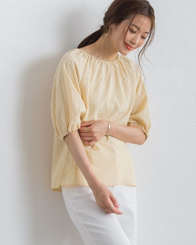 ボリュームを持たせて袖口にギャザーを寄せたバルーンスリーブ。シルエットに丸みがつくことで、ふんわり優しいイメージに仕上がります。ボトムスにパンツを合わせても、バルーンスリーブのおかげでフェミニンな印象に。袖丈が肘までの五分袖なら、二の腕の太い部分をデザインでさり気なくカバーすることができます。風の通り道を確保するために、薄手の生地を選ぶと涼しく過ごせるでしょう。