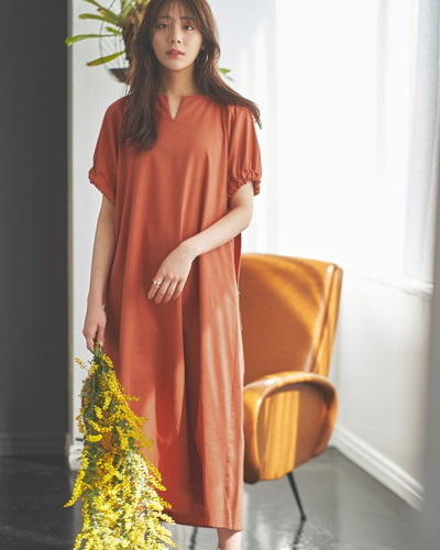 ①トレンドカラーのワンピース