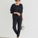 40代の場合は過度に広がるシルエットよりも、落ち感のある素材や、無駄なボリュームを抑えたデザインを選ぶことで品よくまとまります。