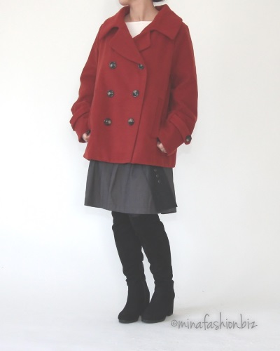 秋冬カラーのテラコッタピーコート。