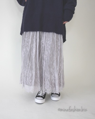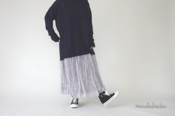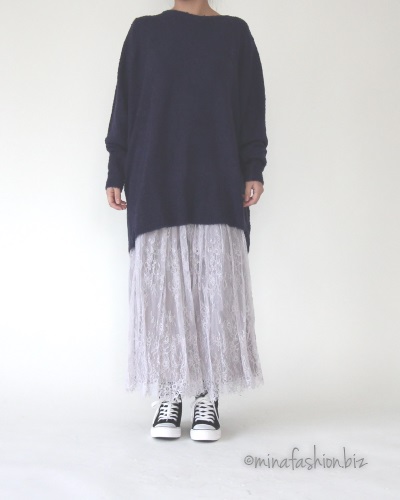 ゆるニット×レーススカート