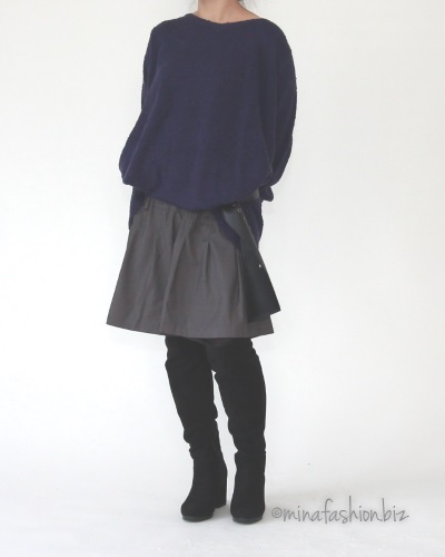 Aラインの可愛いデザインで、バルーンスリーブのニットと一緒に。