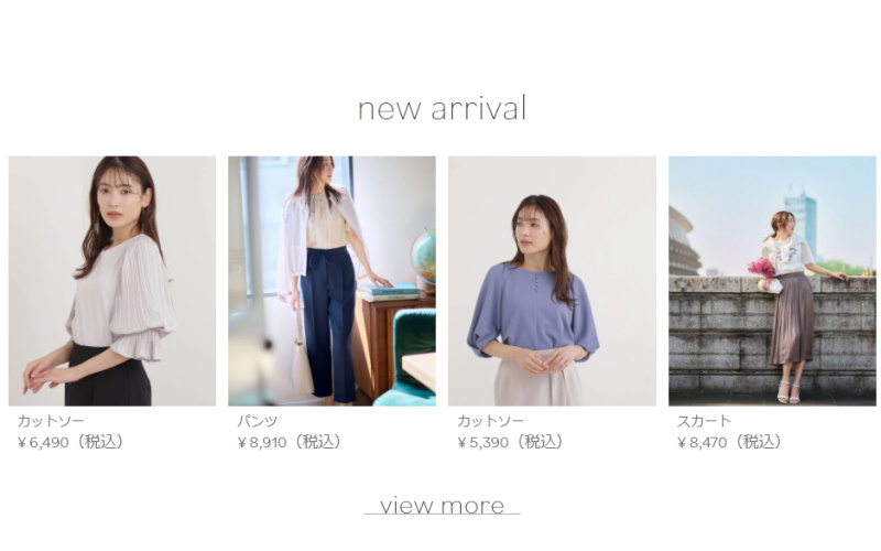 オフィスカジュアルのナチュラルビューティーベーシックに対し、こちらはきれいめカジュアルが中心のブランドとなっています。