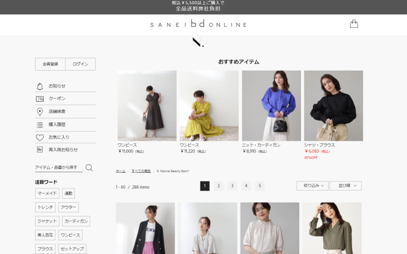 サンエービーディーオンラインのナチュラルビューティーベーシックでは、ファッションアイテム全般を取り扱っています。