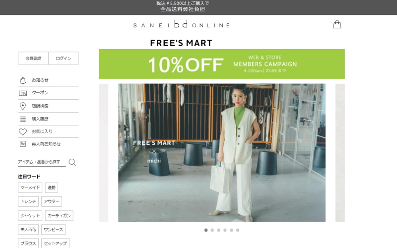 大人フェミニンからトレンドカジュアルまで、魅力的な服や小物がぎゅっと詰まっており、会員登録すればよりお得にショッピングできます。