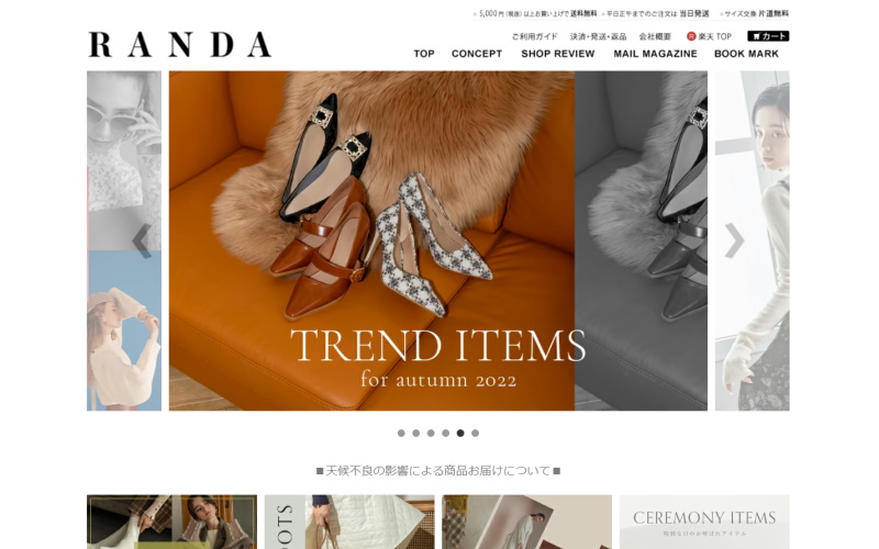 ランダはパンプスやサンダルなどが得意で、女性らしいファッションを好む方に似合うシューズがたくさん。
