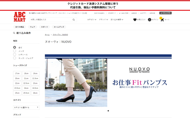 靴ブランドの大手総合ショップABCマートでは、シューズブランド・ホーキンスの姉妹ブランド、ヌオーヴォを取り扱っています。
