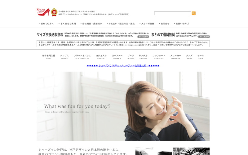パンプス、ローファー、ブーツ、サンダルなど、あらゆる種類のシューズを取り扱うシューズイン神戸。