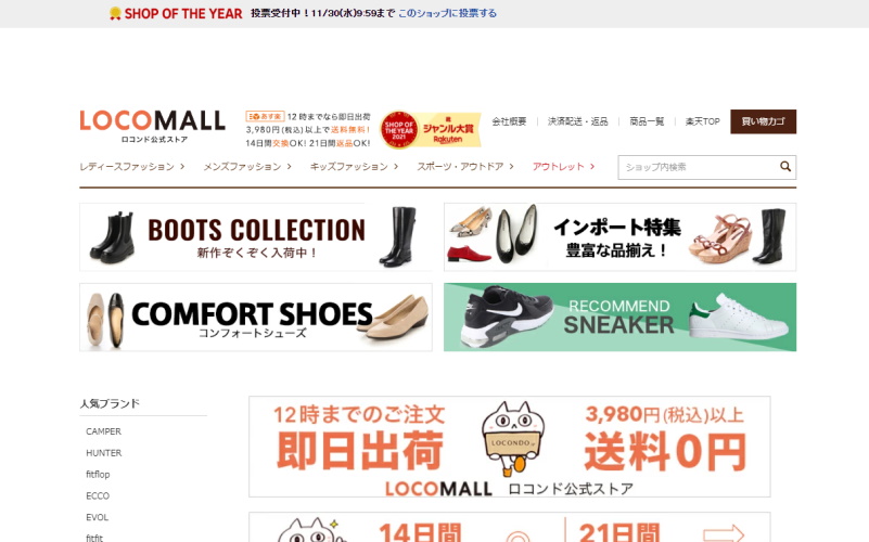 ロコンドはシューズとアパレルを取り扱う大型通販サイトで、国内外4,000以上の人気ブランドからアイテムを選べます。