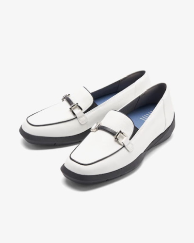 外反母趾にも優しい人気のライトアップシリーズより、軽さと耐久性がアップした新作ローファーが登場しました。ほかとは違うひねりの効いたビットデザインで、今風のスタイリッシュなローファーコーデを楽しめます。画像のホワイトは甲まわりに黒のパイピングを添えてあり、一足で今季らしさをアピールできますね。ローファーとスニーカーのいいとこどりをしたシューズで、トレンド感と同時に足への優しさも叶える万能な一足です。通勤やきちんとしたシーンにも。