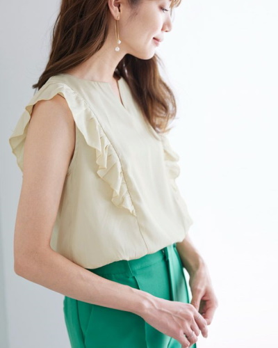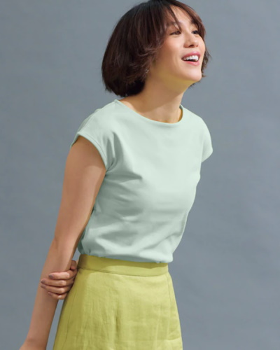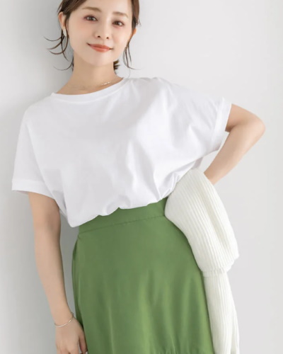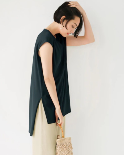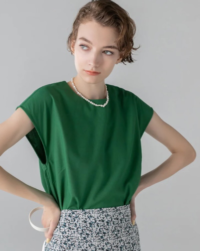 ノースリーブに比べて夏本番を迎える前から使えることも、軽く袖がついたフレンチスリーブならではの魅力です。