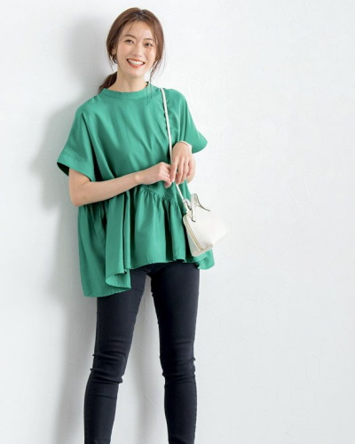 ゆったりとした身幅のフレンチスリーブプルオーバーは、肩のラインがはっきりしている人に向いているアイテム。持ち前の骨格でスタイリッシュな印象に仕上がり、今っぽい大人のカジュアルスタイルを楽しめます。しっかりとしたコットン素材を選んで、カジュアルでも品のある装いに。トレンドカラーでコーディネートに差をつけるのもおすすめです。