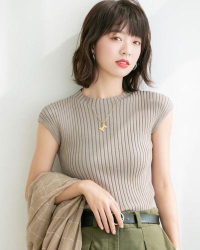 おすすめのアイテム その2.フレンチスリーブリブニットトップス