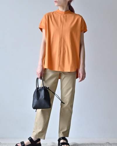 首の詰まったハイネックやモックネックのデザインは、シンプルなデザインでも今っぽく見せてくれると大評判です。フレンチスリーブの袖が短めなので、襟の開きが少なくても涼しく着こなせます。程よい丈感のTシャツは、一枚で着たりアウターの中に着たりと用途が多く、色違いで揃えておくと重宝するはずです。