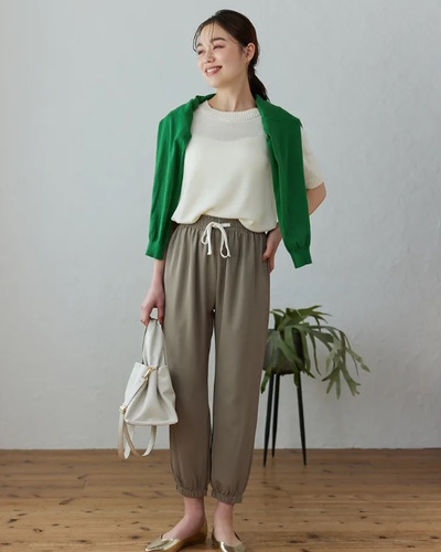 シルエットにはゆとりがあり、汗をかいても張り付かないので梅雨でも快適。脚のラインを拾いづらいことも魅力の一つです。