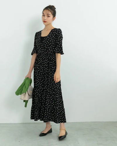 ⑥ドット柄ワンピース