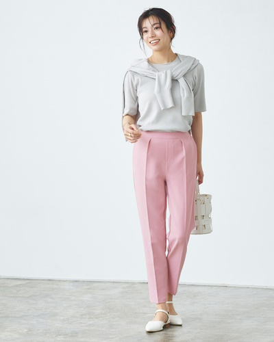 オフシーン②五分袖のアンサンブル×撥水テーパードパンツ