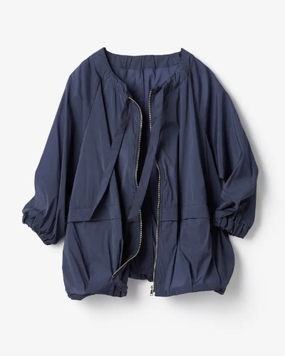 こちらのアイテムはゆったりとしたフォルムが特徴で、裾をドローストリングで絞るとコクーンシルエットに変身。